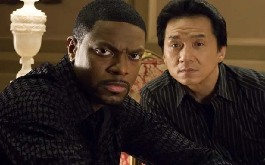 其一,黄金搭档不可替代。成龙的“身体系幽默”与克里斯·塔克的“嘴炮系幽默”形成完美互补,一庄一谐、一武一逗,两人的对手戏火花四溅,这种化学反应并非剧本公式能复制。成龙的拳拳到肉、不用替身的动作戏,搭配克里斯·塔克的夸张表情与机关枪式台词,成为系列最鲜明的标签,没有他们,《尖峰时刻》便失去了灵魂。