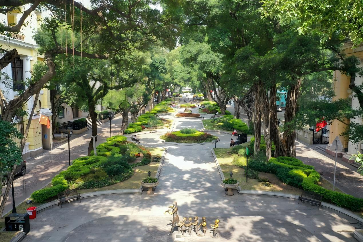 沙面公园、沙面大街、滨江带均设有休息长椅,公共休息空间充足,绿荫覆盖。